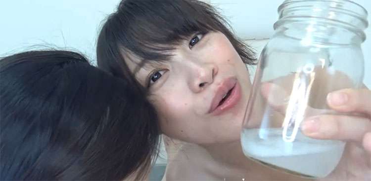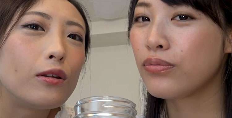 本シーンでは終始下から2人を見上げるようなアングルで撮影しており、男優は登場せずカメラマンの声も入っていません。2人が超エロエロに、ボトルに大量の唾を貯めていくのを見て、いっぱいシコってくださいね。