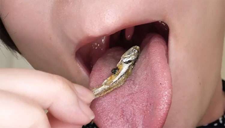 4.煮干し咀嚼もちろんただ咀嚼するのではなく、煮干しを生き物として口の中を泳がせてから、最後にぐちゃぐちゃと噛み潰してもらうところを高画質で収めました。