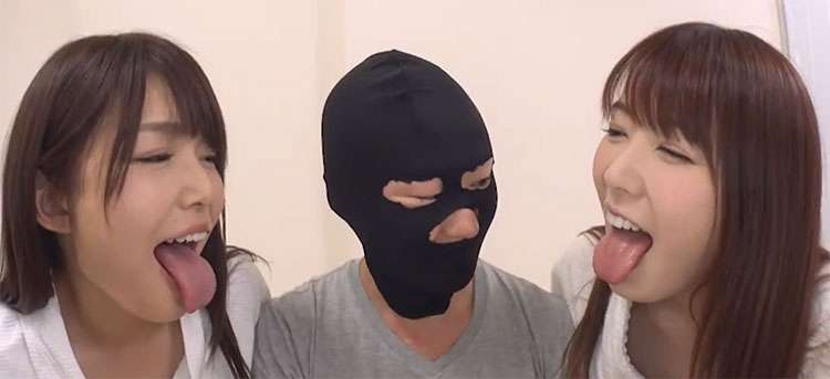 そして4人目。ニオイの嗅ぎっぷりに定評のある、覆面変態くんです。鼻呼吸専用マスクを装着して、2人の極上美女お姉さんに挟まれたマスクマン。左を向けば波多野結衣ちゃん、右を向けば碧しのちゃん。