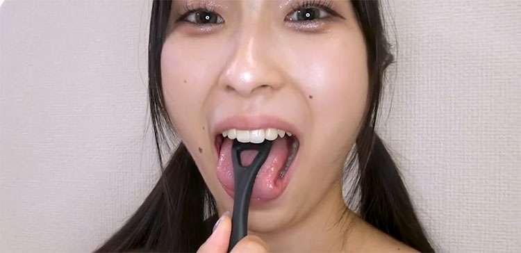舌の根元の真っ白なベロ垢に大興奮のマスクマン。舌ブラシについた白いベロ垢の臭いを嗅いでマスクマンは大喜び!羨ましい!!こんなかわいい子のベロ垢を嗅げるなんてもうたまりません!!