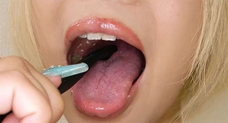 アリスちゃんされるがままです。要求は止まらず今度は舌ブラシで舌苔を採取してもらいました!テッカテカの舌から結構採取できてます!